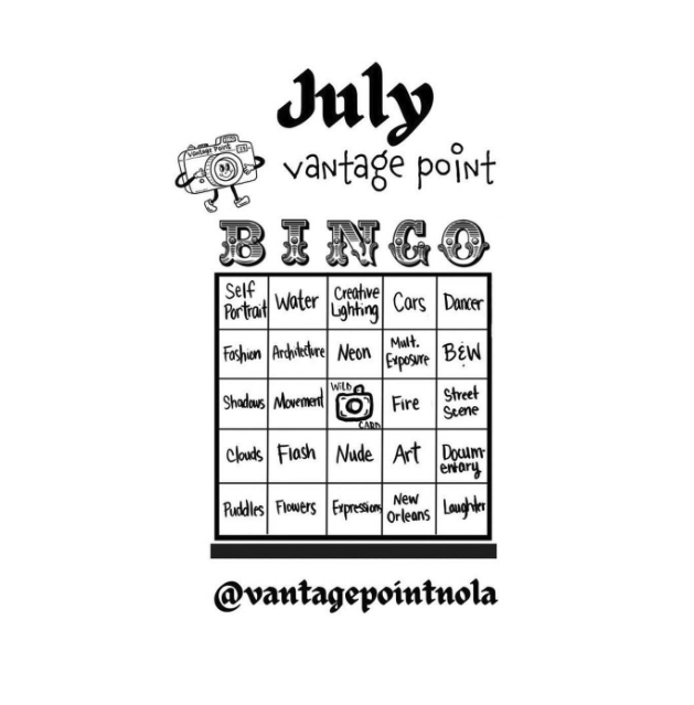 It’s BINGO time. For July, Vantage Point is hosting a game of BINGO to stimulate your creativity. Instead of a photowalk this month we trying something different for photographers…